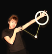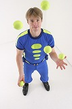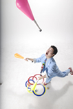 様々な道具を操る。ジャグリングをテンポ良くこなしサーカス学校仕込みのアクロバットを披露 |